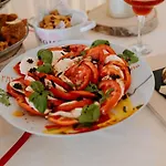 Stupina serveert 's ochtends een buffet ontbijt.